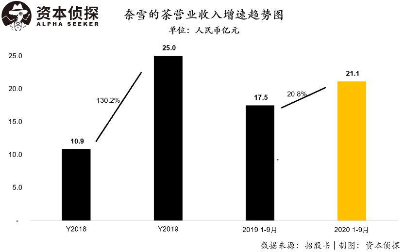 招股书显示,奈雪的茶在2018年、2019年及2020年前9个月营业收入分别为10.9亿、25亿以及21.1亿元人民币,同比增速分别为130.2%和20.8%。