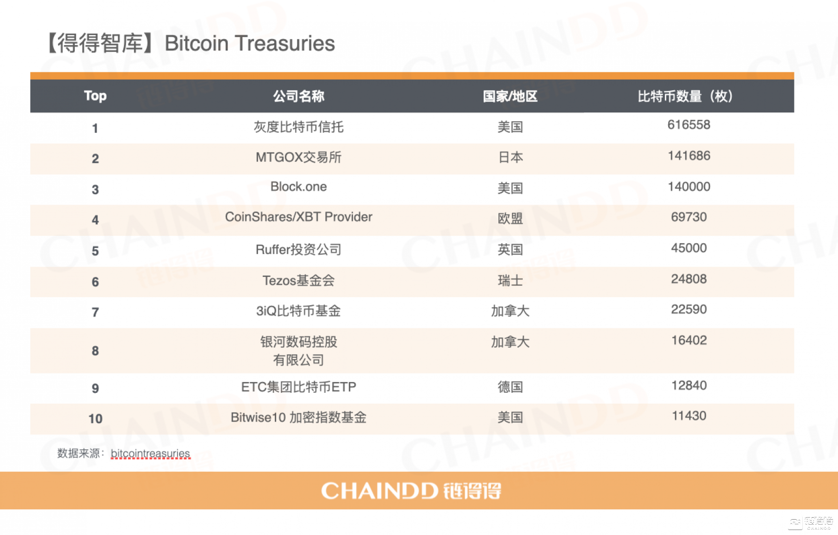 首先,我们先来看一下得得智库根据公开数据综合分析统计出的比特币十大持仓机构。下面会为大家一一分析。