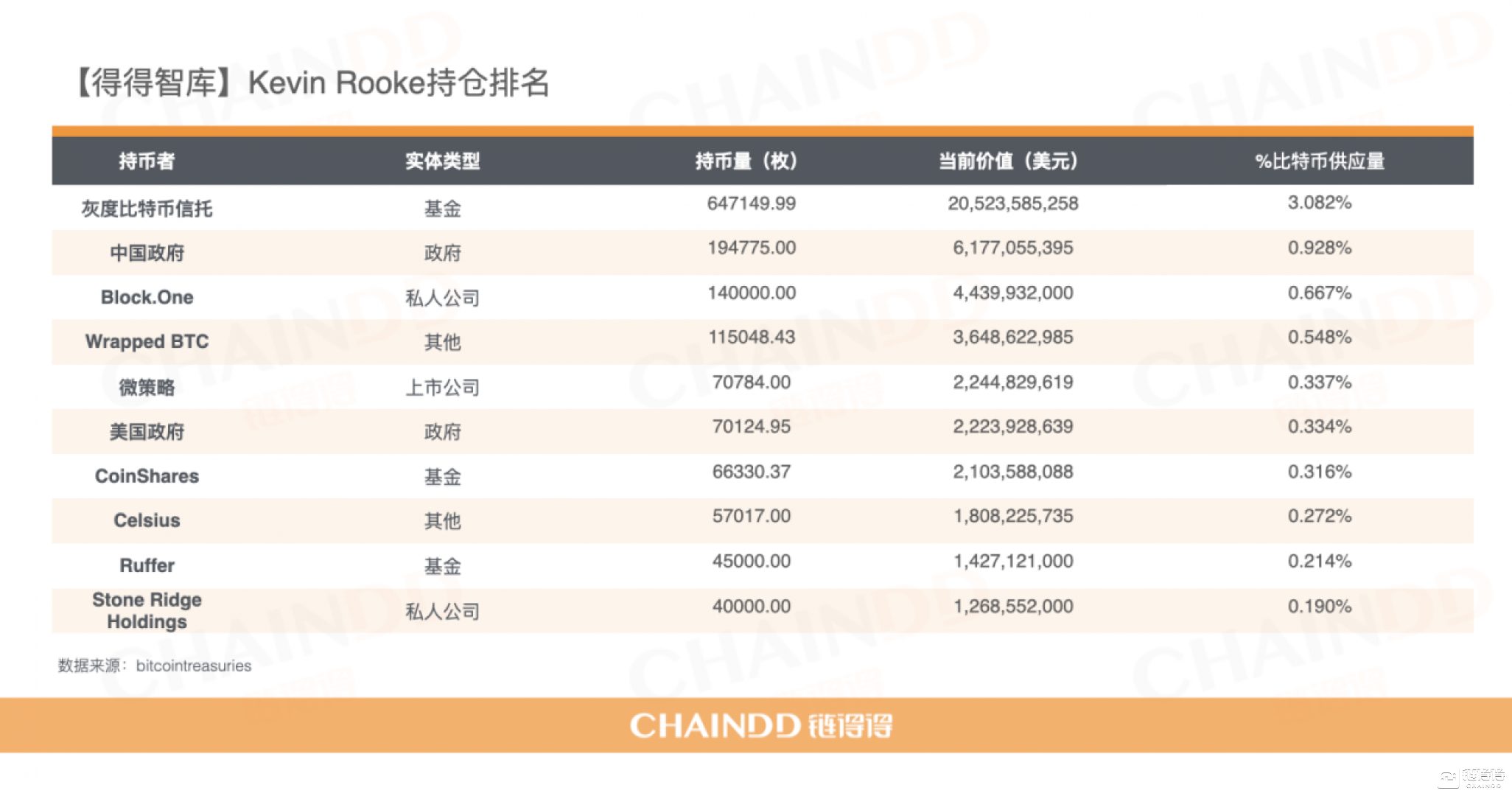 得得智库找到了两个比较权威的BTC持仓排行(按公司和组织排序)网站,分别是https://bitcointreasuries.org/和https://www.kevinrooke.com/bitcoin。