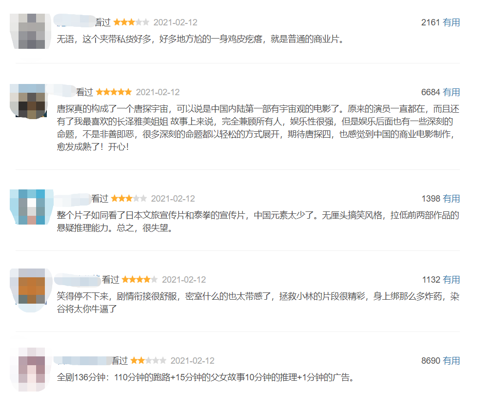 不过,不知是否因为承载了太多期待,《唐探3》口碑褒贬不一。豆瓣评分最新6.1分,不少观众吐槽影片转折生硬,广告充斥其间,推理剧情薄弱,对于唐探系列最大悬念Q的揭晓也不够刺激。