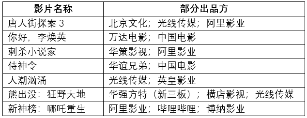 今年春节档“七雄”的部分上市出品方名单如下,请看官老爷们自取,这些名字可都是老熟人了。