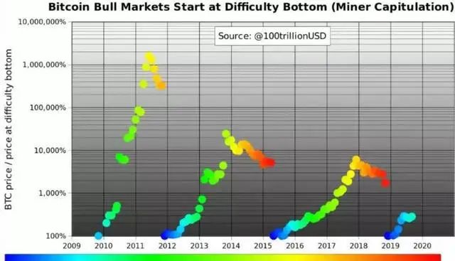 近日,著名加密分析师PlanB在推特上分享了关于比特币挖矿的数据,在2013年底比特币的价格为1300美元/个,与上一个难度低点相比上涨了50000%。而在2017年末比特币的价格为20000美元/个,其相比于前一个难度点上涨了9000%。而2021年极有可能会重现这一场景,也就是价格上涨到31000美元/个。