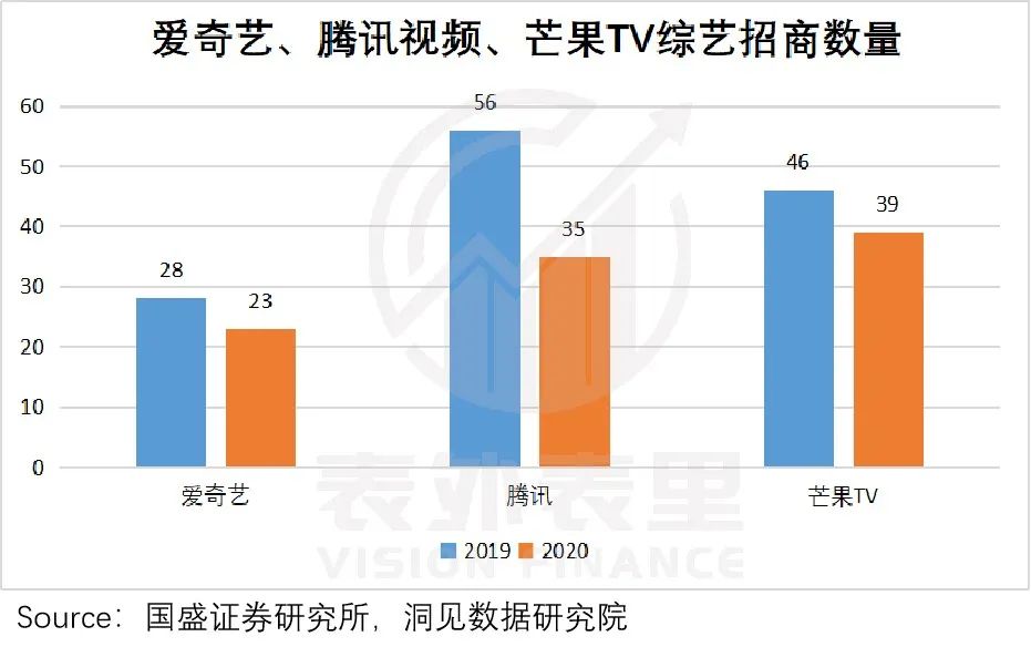 受此逻辑驱动,以综艺见长的芒果TV,虽然用户基数属于第二梯队,但2019年、2020年的综艺广告招商能力,却并不输于第一梯队平台爱奇艺、腾讯视频。