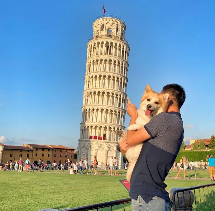 旅行途中,一向不爱拍照的徐先生,为无聊留下了不少有意思的瞬间。在比萨斜塔前,无聊用爪子“推倒”了比萨斜塔,在纽约的时代广场前,它合拢前脚,站的直挺挺的,正襟危坐的和身后的摩天大楼合影留念。