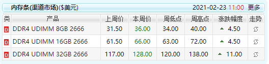 从实际情况来看,据中国闪存市场ChinaFlashMarket的最新报价,去年12月份,内存市场涨价明显,部分渠道内存条价格涨幅已超过10%。在对比今年2月份的内存条报价,可以看到目前业内的内存条价格是处于持续上升趋势的,较去年12月涨价将近26%。