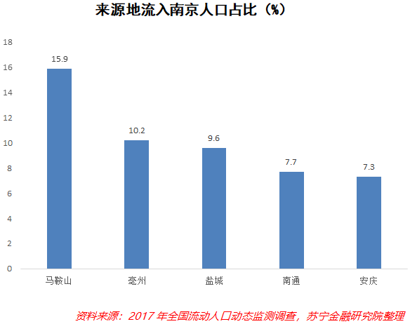 之所以如此,除了古代的行政区划等历史原因外,一是因为南京的地理位置,南京地处江苏省西南部,北面与安徽省的滁州市接壤,西面与安徽省的马鞍山市相连,南面与安徽省的宣城市毗邻。二是因为长期以来,南京与安徽地区的经济和人员联系紧密,根据2017年全国流动人口动态监测调查数据整理,南京的流动人口前五大来源地中,有三个是安徽城市,分别是马鞍山、亳州和安庆。