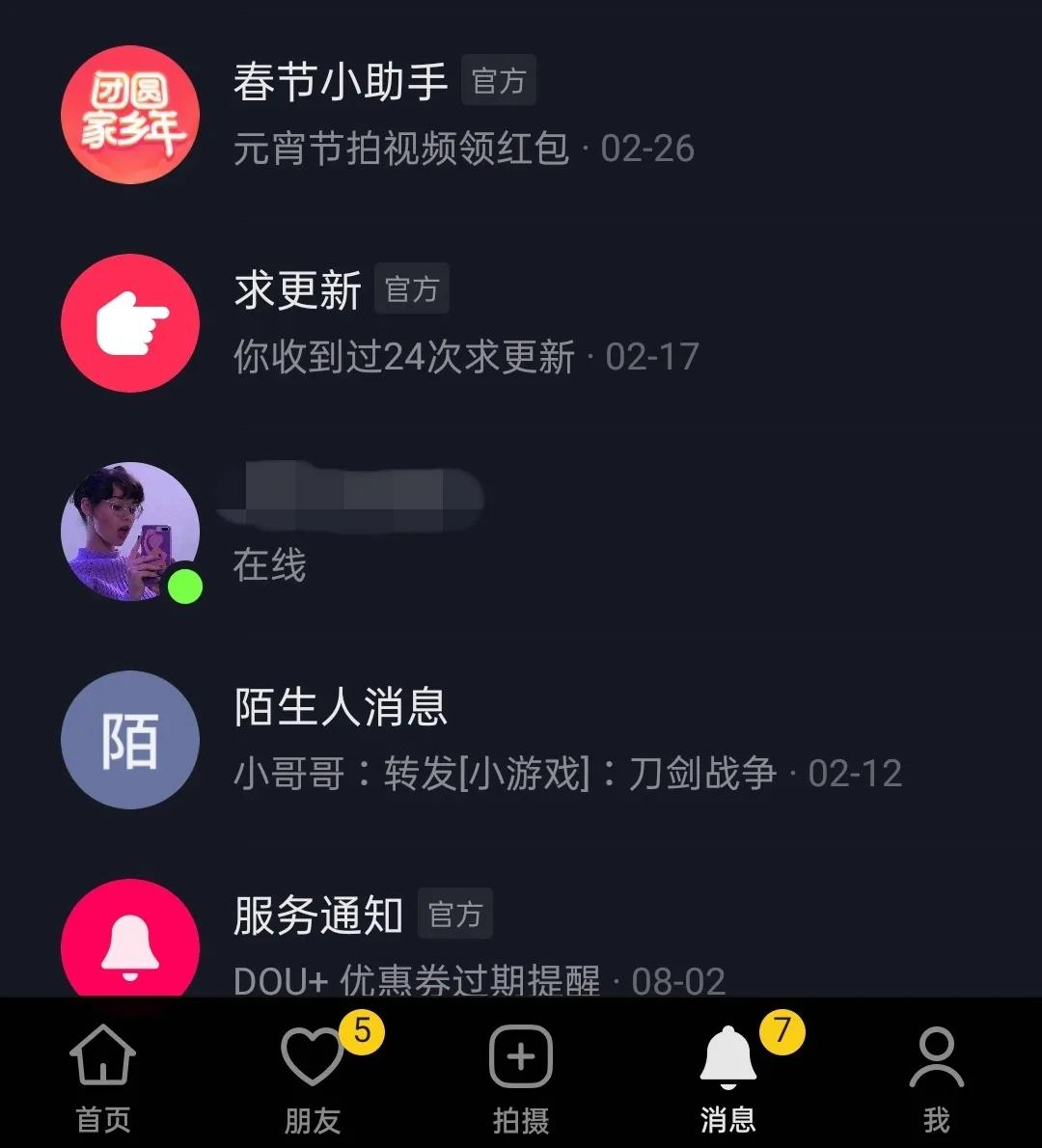 目前,抖音已经上线了好友在线显示的功能。这一功能也有利于方便用户在抖音沟通的及时性,从产品上增加了用抖音沟通的需求(更低的使用成本,了解对方在线状态,方便获得及时性反馈)。