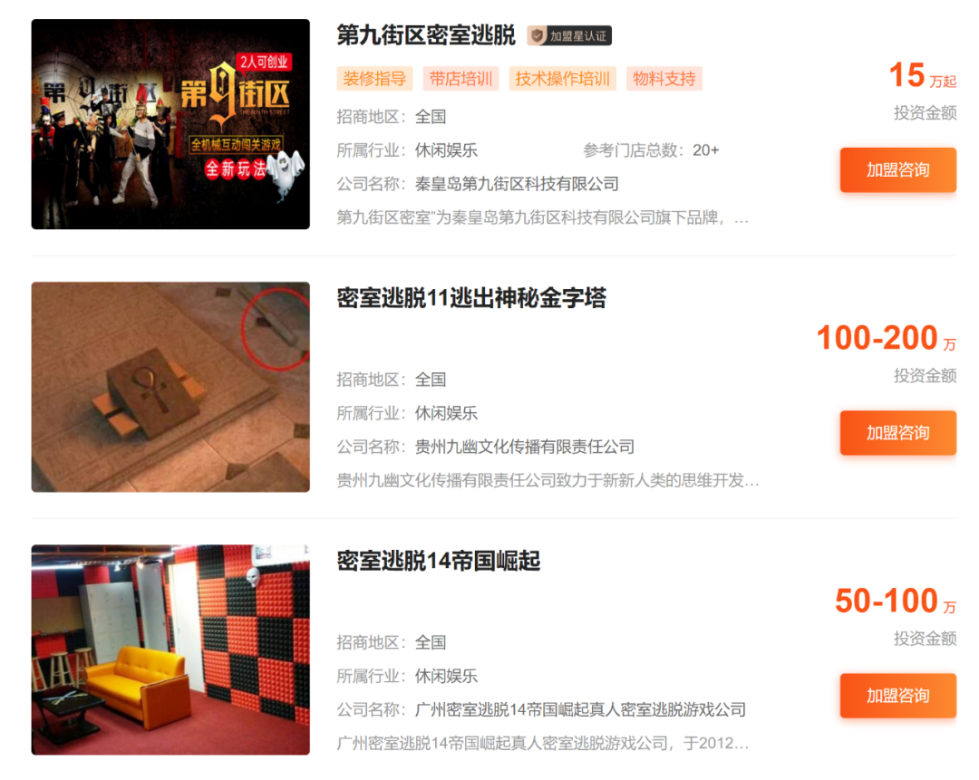 密室逃脱加盟项目,图源加盟星
