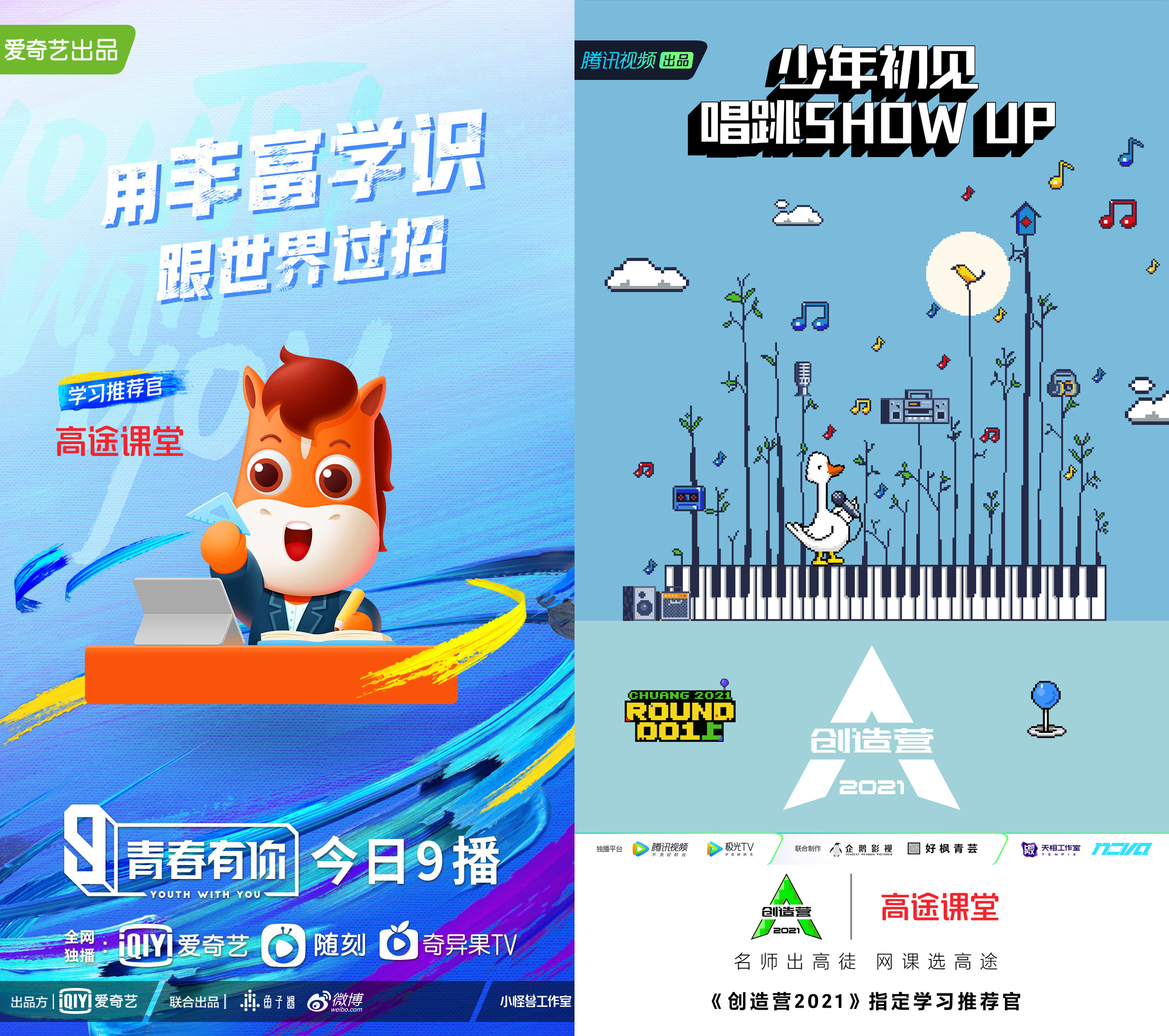 紧随其后的是高途课堂,当前台网总共赞助了5档综艺,值得一提的是,高途课堂将目光锁定在团体选秀之上,无论是来自爱奇艺的《青春有你3》,还是来自腾讯视频的《创造营4》,都有同一个指定学习推荐官高途课堂。