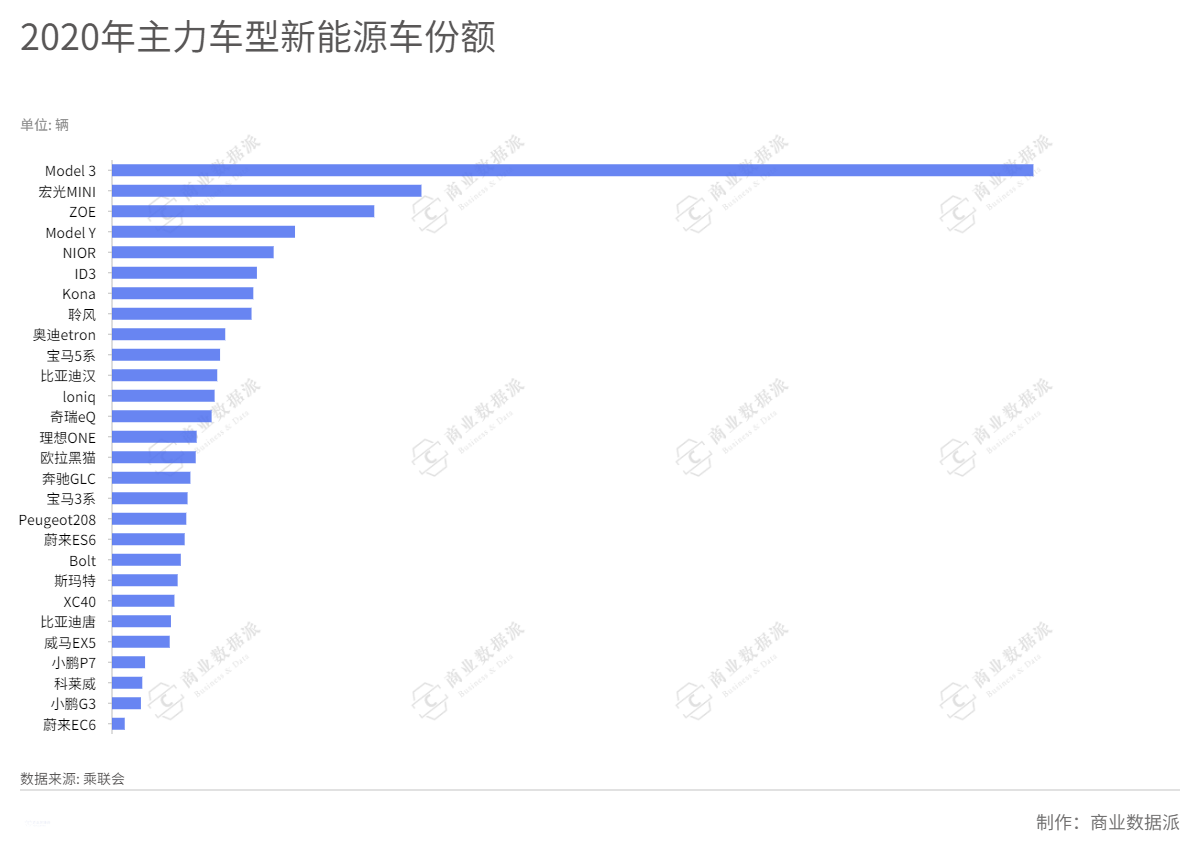 一个有趣的插曲是,五菱旗下号称最便宜的新能源车“宏光MINI”,在2020年下半年成为网红,并一跃在2021年1月,成为中国最销量最高的新能源汽车,可见下沉市场的潜力之大。
