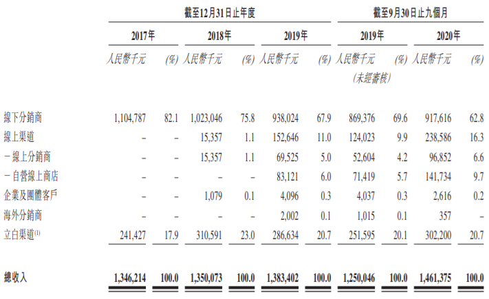招股书显示,2017年、2018年、2019年和截至2020年 3月31日止三个月,与立白的销售额分別占到公司营业收入的17.9%、23.0%、 20.7%及20.7%。且朝云集团通过立白集团向48家大客户(包括沃尔玛、家乐福等全国性、区域性大卖场、超市、百货商店及便利店)销售,目前覆盖了约11000个销售点。