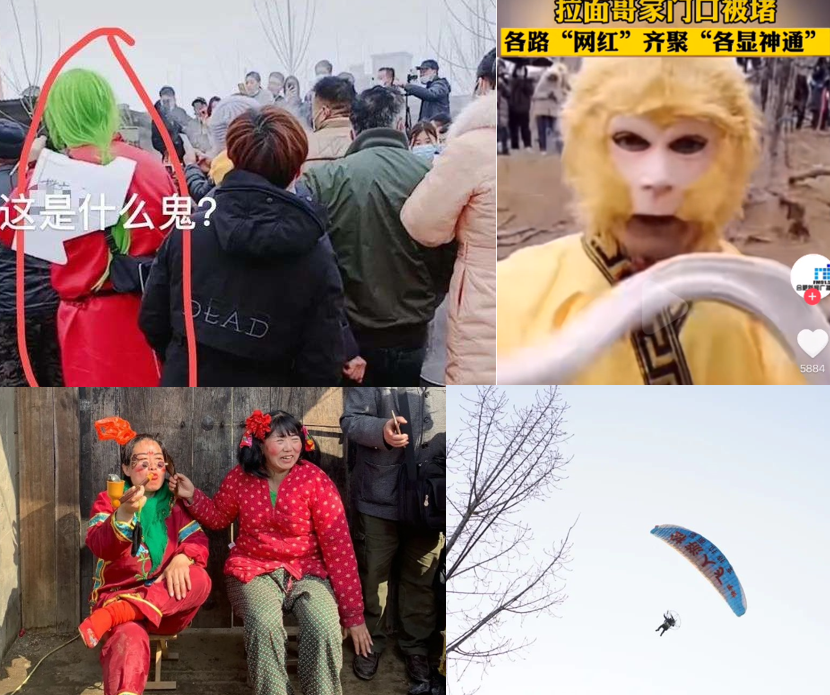 为了迎接纷至沓来的“围观者”,拉面哥所在的村子增设了6个停车场,投放了8辆摆渡车,还在原本4G都未普及的情况下增加了5G信号站。有记者在3月5日探访时发现,车流在距离拉面哥的家尚有4公里时就已经没法移动,快到家门口时更像是走进了乡镇集市,人群摩肩接踵,各路商贩、直播、横幅、广告齐聚。