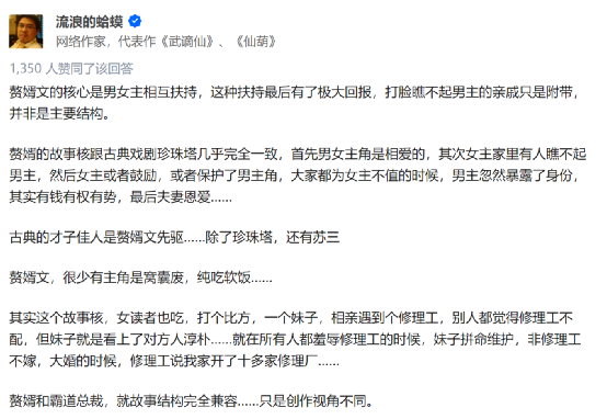 事实上,赘婿文本身就带有“霸道总裁”特质,电视剧只是强化了这一点。网文作家流浪的蛤蟆就曾在知乎上公开表示,赘婿文和霸道总裁文,就故事结构完全兼容,只是创作视角不同。