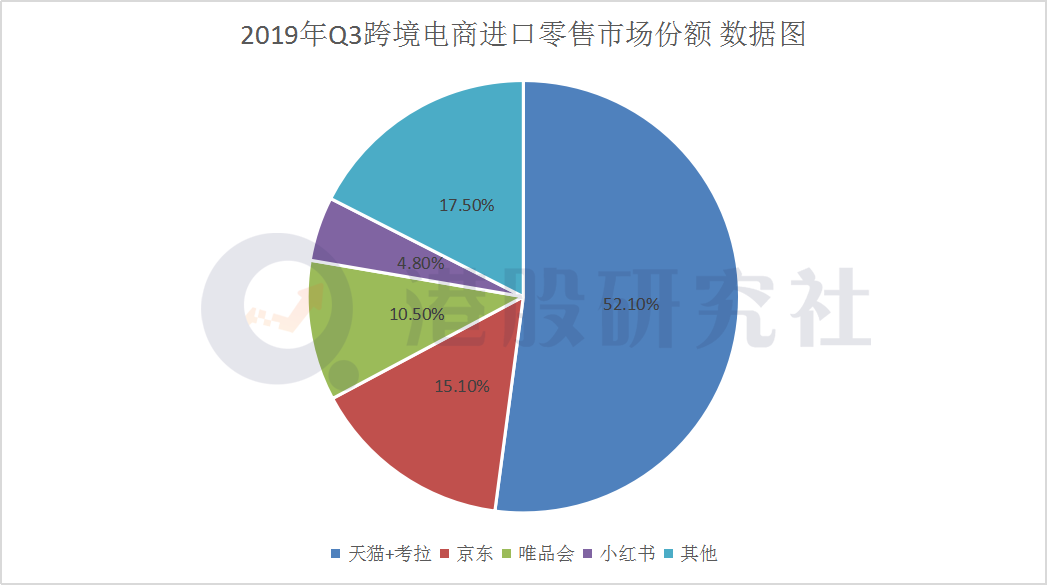 但在目前的跨境电商企业中,天猫+考拉,小红书、唯品会等都占据着相当份额,京东在跨境电商依然面临着中国市场对手的压力,天猫+考拉的阿里系更是囊括了中国跨境电商市场的半壁江山。根据艾媒咨询数据显示,2019年跨境电商进口市场份额中,阿里系以52.10%占据龙头位置,京东以15.10%处于第二,唯品会则以10.50%排在第三。