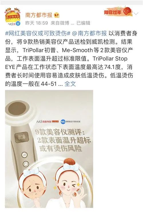 近期,网红美容仪TriPollar初普“温控超标致烫伤”上了热搜,尽管品牌方初普已作出回应,但此事却牵出家用美容仪行业乱象,质量瑕疵、虚假认证、金属含量超标等问题频发。