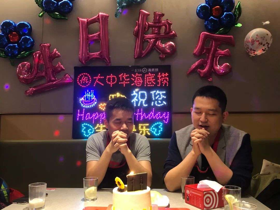 郑锐和同事一起过生日