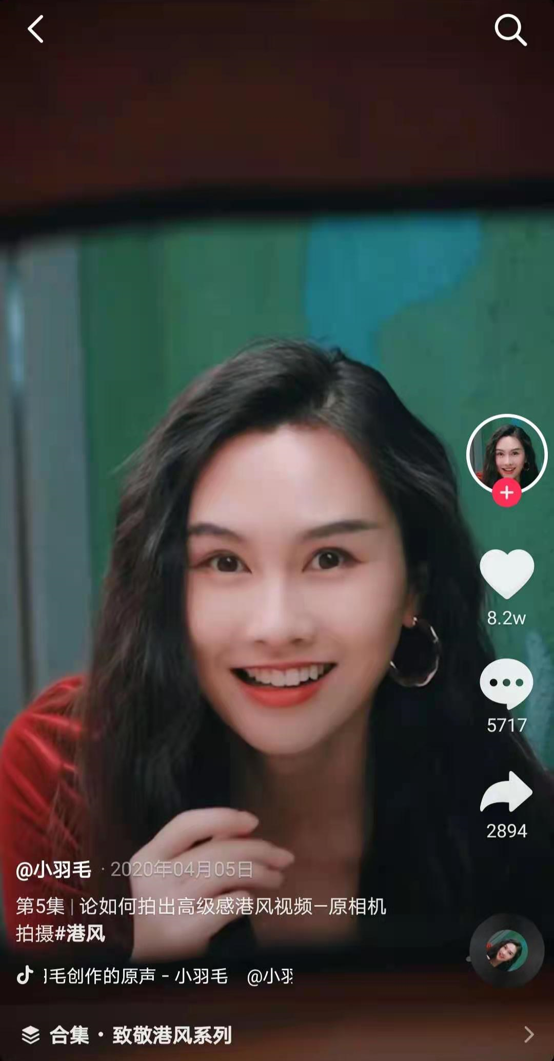 相比之下,同样主打港风的博主壶提提,入驻抖音的时间就比较短。2020年3月8日才发布第一条视频的她,在第三条视频时,就确定了港风的路线。视频点赞量也从之前的不到2000,一举达到5.8w。