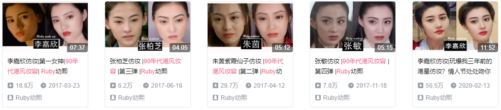 比如B站up主Ruby幼熙,她一口气把朱茵、李嘉欣、张敏、张柏芝等女神仿了个遍,乍一看都跟本尊都有几分神似呢。