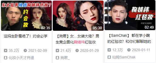 非常有趣的一点是,仿女生妆容并不是女生博主的专利。我们意外发现了几位艺高人胆大的男博主,不知道是不是更有内味呢?