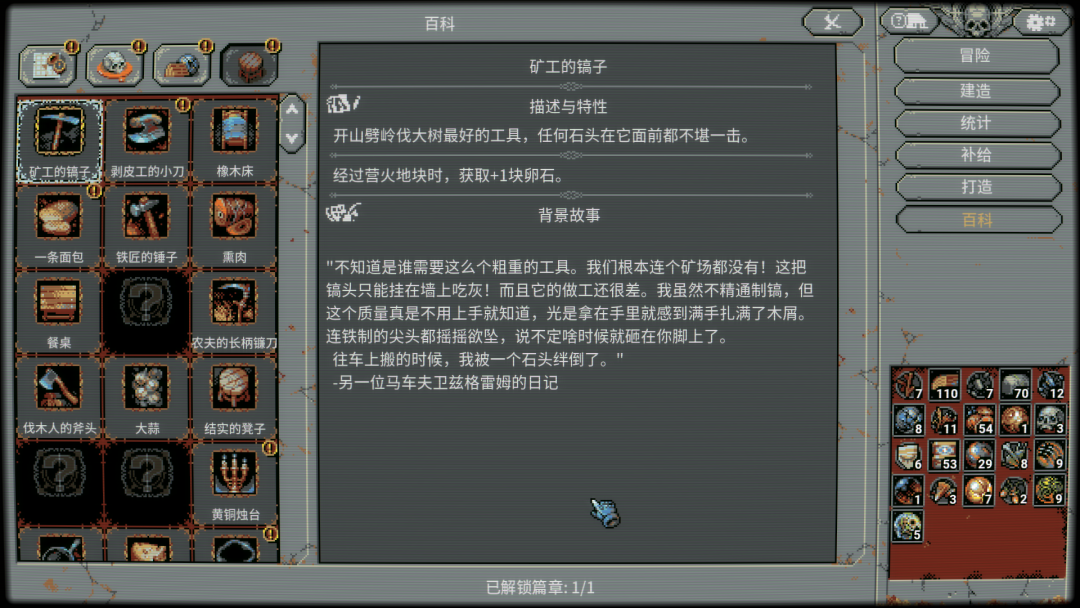 别忘了,玩家的最终任务是击败BOSS,找回记忆。所以建造新的建筑,遇到新的怪物,解锁新的章节都会有相应的剧情,你与每个物品、怪物的记忆都归拢在百科中,通过战斗中掉落的记忆之书玩家可以一一解锁这些回忆。