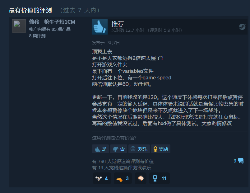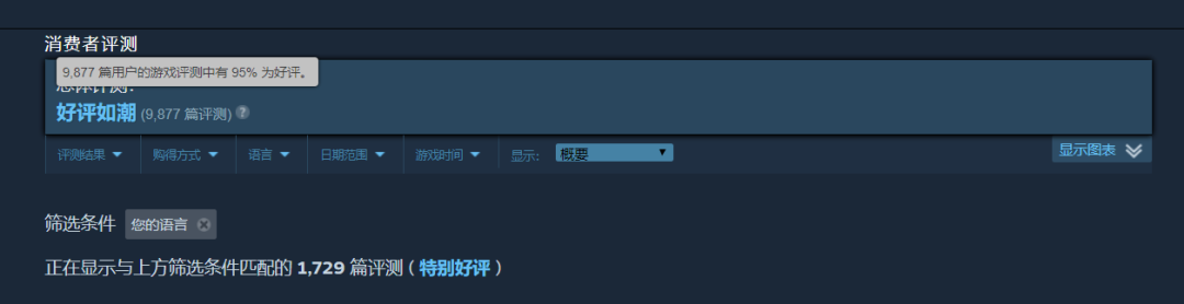 同样给出好评的还有玩家们,3月11日该游戏在Steam上有6014个评价,好评率为97%。3月14日该游戏有9877个评价,95%为好评。据说,这款游戏还获得某厂大老板“做的不错”的评价,做到了业内业外“两开花”。