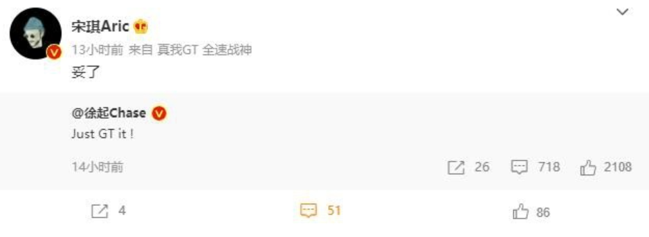 有意思的是,在K40发布会之后,realme品牌市场总监宋琪转发徐起的微博,内容仅两个字: