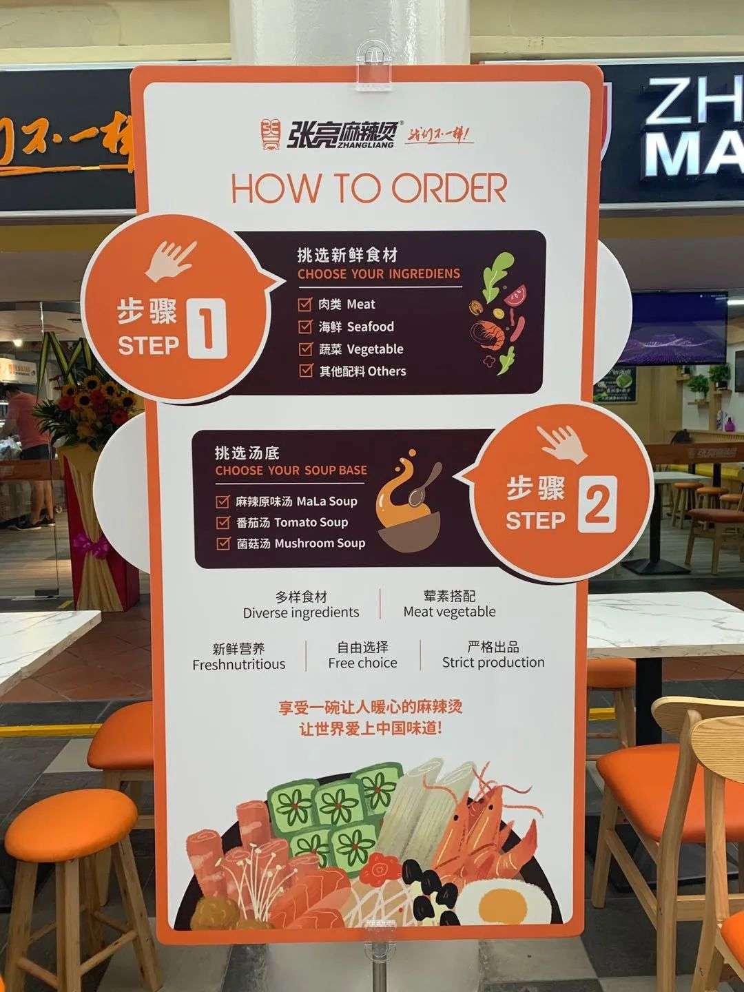 在大部分客群都是华人的情况下,张亮麻辣烫海外门店的布置充斥着中文的内容。