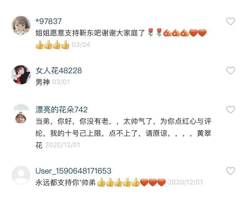 “你没有老,太帅气了,为你点红心与评纶(论),我的+(关注)已上限,点不上了,请原谅。”“永远都支持你帅弟。”评论区一样是安慰的话。