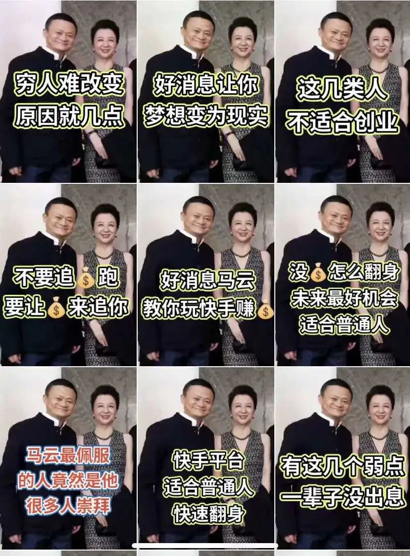 点进“马云【励志正能量】”的账号,视频内容充斥着诱导性的话术。“好消息,马云教你玩快手赚钱。”“快手平台适合普通人快速翻身。”