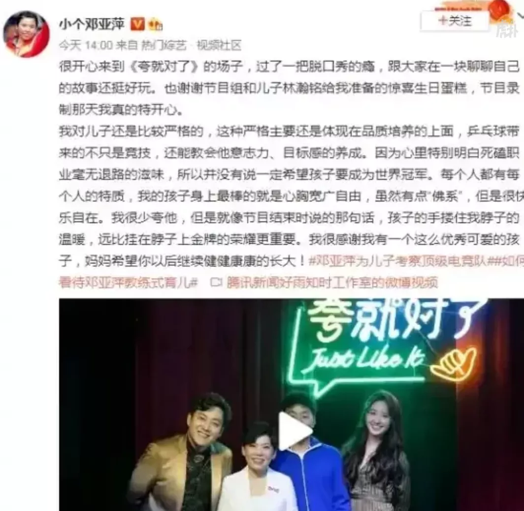 也有来自职业体育人的思考,比如邓亚萍。她曾经考察了两家职业电子竞技俱乐部,了解电竞培训体系的训练作息,而她的儿子在得知每天要训练超过12个小时后很快打消了“走职业电竞”的想法,这让她在节目里感叹:“这就是玩和职业的区别,任何一件事情玩,它就是玩,职业是没有退路的”。