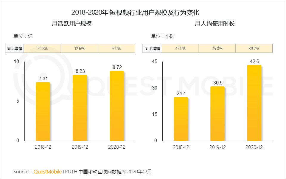 据QuestMobile发布的《2020中国移动互联网半年度报告》显示,短视频占据用户的时长份额已接近20%。众所周知,用户每天上网时长是固定的,在不同内容应用上消费时间是一个“零和游戏”。也正因如此,微博、微信两家社交老牌巨头,去年都结束短视频“代理人”模式亲自下场,大力扶持“视频号”业务,这是它们应对快抖竞争必须要做的战略下注。