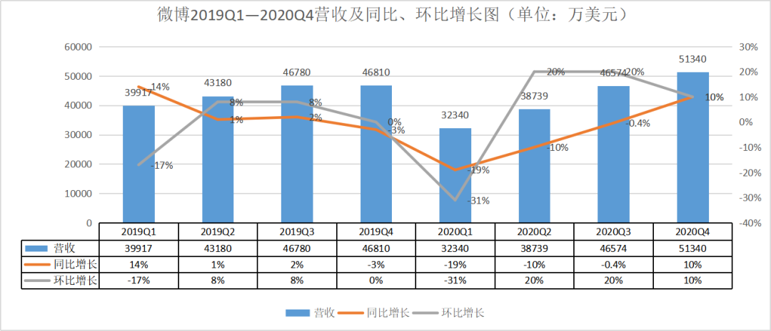 3月18日,微博公布了2020年第四季度及全年财报,由于受到疫情冲击及互联网增长趋势见顶的影响,微博全年整体营收下滑4%,但纵观全年,微博的业绩表现还是趋于稳健的。