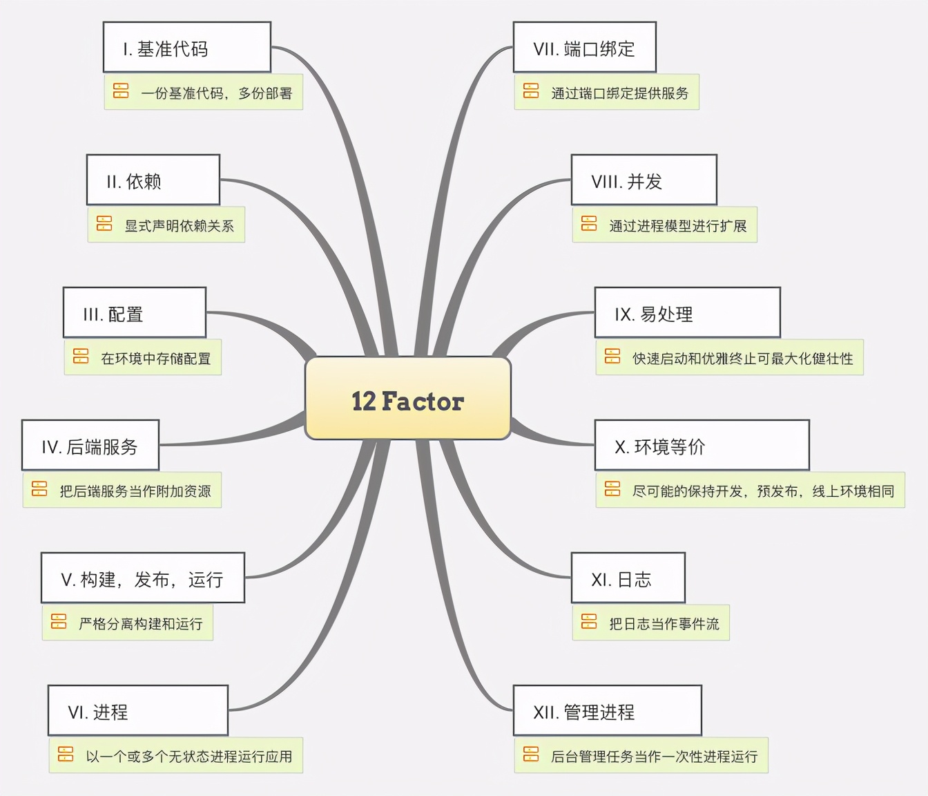 对于应用开发领域的从业者,这些要素想必都非常熟悉,相当于是一份SaaS应用的最佳实践标准,可以适用于任何语言开发的后端应用服务,将开发流程自动化和标准化,降低开发者的学习成本。