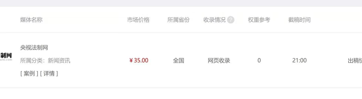 点进该公司官网,页面上赫然显示新闻媒体与自媒体两个专栏,根据统计,共有可发布的通稿“山寨”媒体网站3014家,自媒体322家,并且全部明码标价,其中凤凰娱乐网是165元,央视法制网的价格是35元。