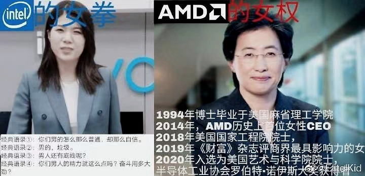 一场普通的产品推广,杨笠作为当事人也再一次被舆论恶意攻击,英特尔先后得罪了男性消费者和女性用户,新品没人关心不算,评论区还一个劲的夸AMD,真是得不偿失。