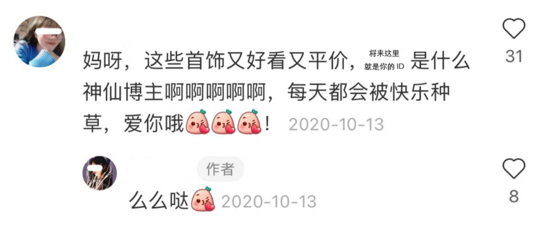 毕竟素材都是便宜货,真的全都体验一遍,成本也不高,而且,这种身先士卒的精神很容易获得掌声——「这是什么神仙博主啊啊啊啊啊,每天都会被快乐种草,爱你哦」。而你,只需要回一个风轻云淡的「么么哒」就够了。