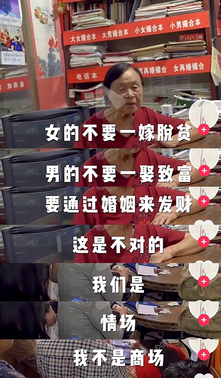 “女的不要一嫁脱贫,男的不要一娶致富,要通过婚姻来发财,这是不对的,我们是情场,我不是商场。”面对只谈经济条件的男孩女孩,奶奶张口就是一顿rap。