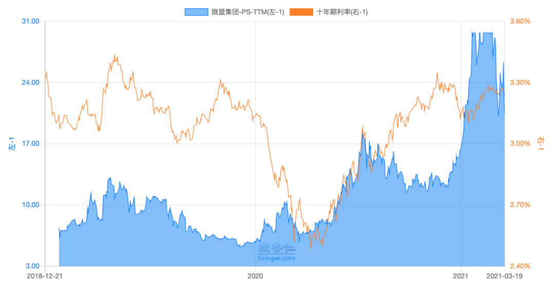 巧的是,在媒体报道淘宝即将开通小程序当天,微盟集团公布了2020年财报。近年来,随着产业数字化浪潮来袭,加之疫情带来企业“上云”的需求,SaaS行业成为资本热捧的风口,从2020年到现在,微盟和有赞的股价最高涨幅均超过700%,两者的市销率最高达30倍。与此同时,市场上对于微盟和有赞是否“太贵了”的言论开始涌现,不少投资者,都将目光聚焦在两家公司的年报数据上。