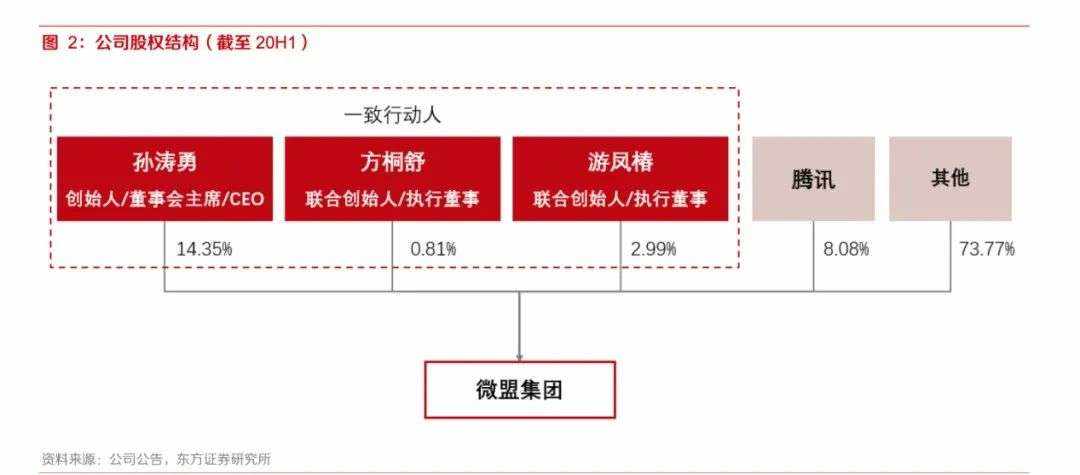 这部分业务最核心的地方在于通过为流量平台卖广告,获得平台返点和广告代理差价。其中最大的客户当属腾讯,数据显示,腾讯控股间接持有微盟集团总计8.01%的股权,这既是微盟发展中的优势,也是市场担心的地方。