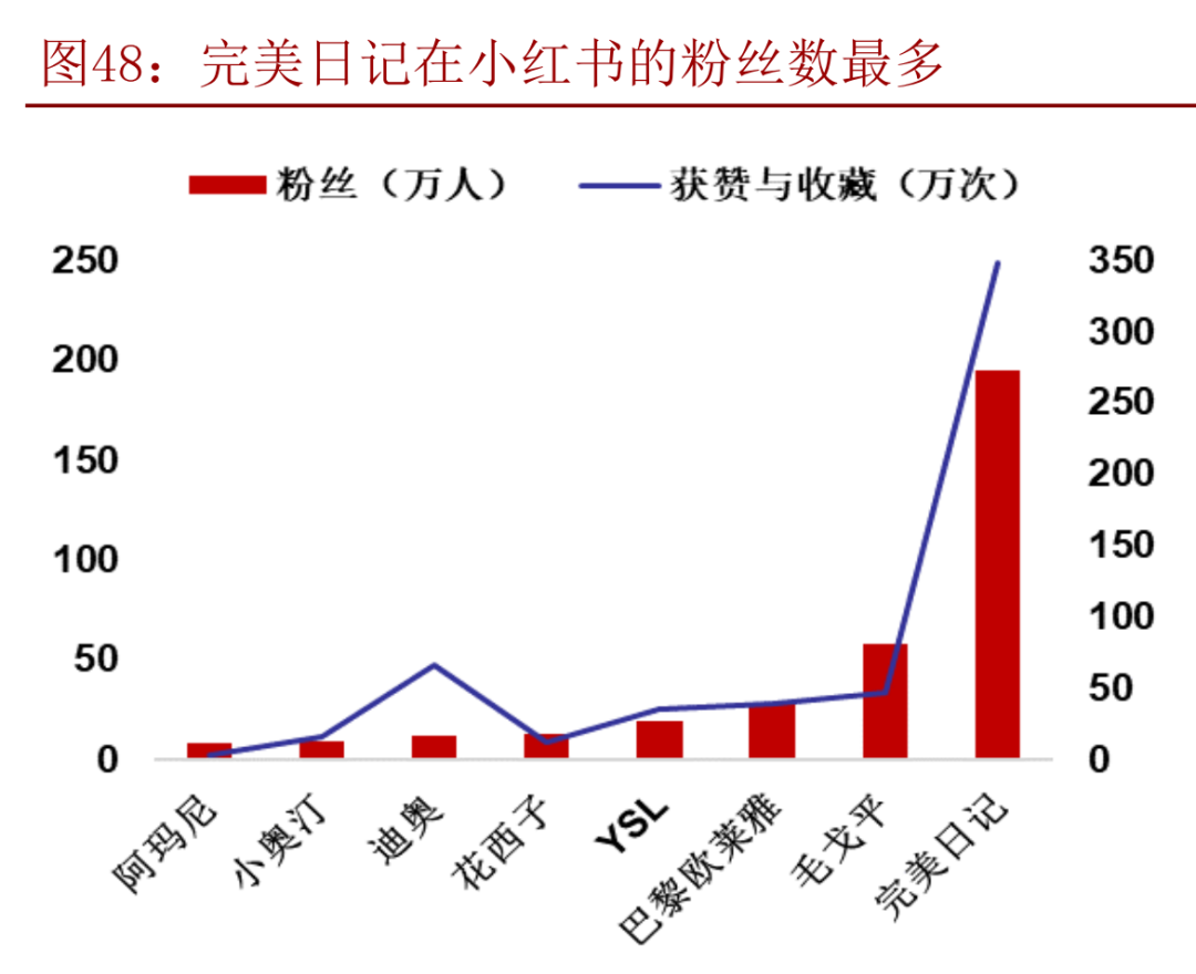 国元证券研报指出,在2018年8月之前,小红书为完美日记流量的主阵地,品牌声量占比高达45.91%。完美日记在小红书上做了不少投放,大多以美妆KOL对于口红、眼影等产品的试色笔记形式呈现,借助这一方法,品牌初步打开了知名度。