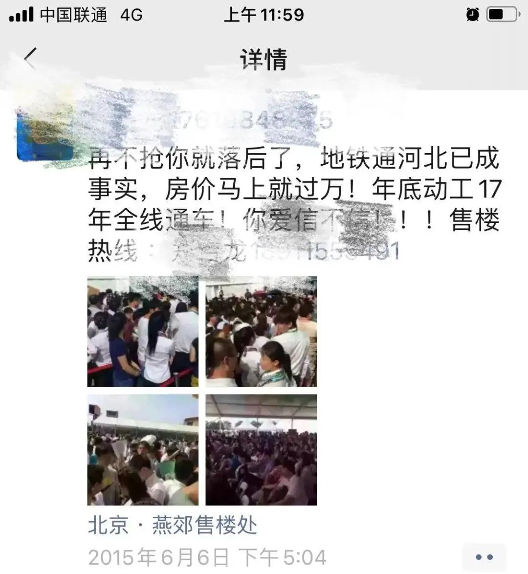 她的原话是,“北京房价5、6万,甚至十万比比皆是,燕郊有京津冀一体化的利好,房价怎么可能不会再次雄起?”