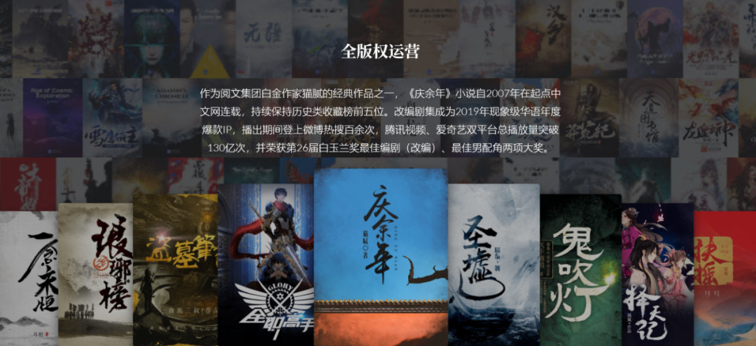 阅文集团拥有的版权,图源其官网