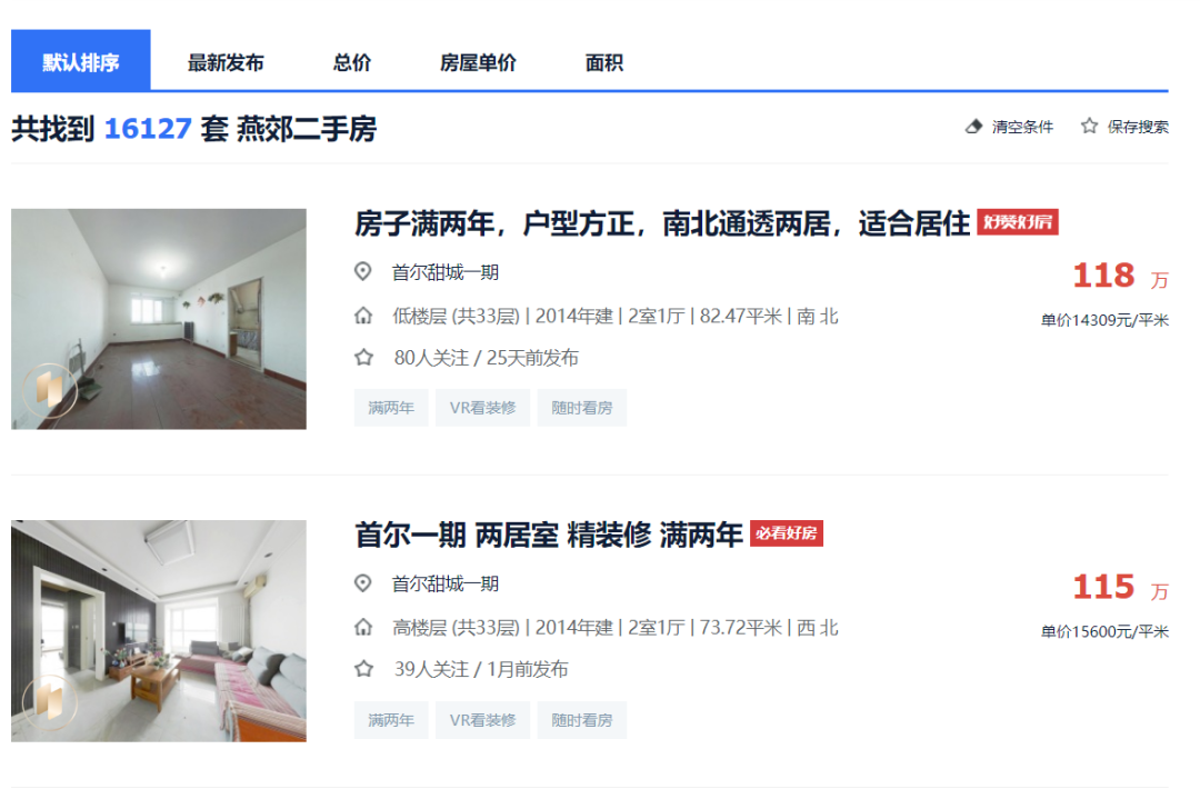 造成这种现象的,不光是房价下跌,主要因为现在二手房市场上房源充裕。刘伟透露,他从公司后台能够看到,固安现在挂牌出售的房屋高达12000套,比2020年的9000多套增加了近3000套。「探客Tanker」通过贝壳找房搜索燕郊在售二手房房源,发现这个数字高达16127套。