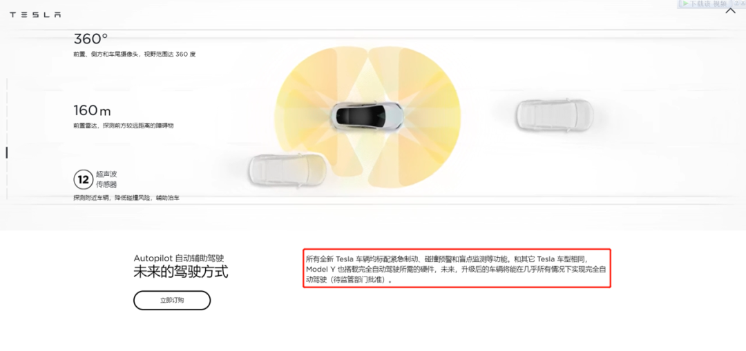 特斯拉对辅助驾驶的介绍,截图自特斯拉官网