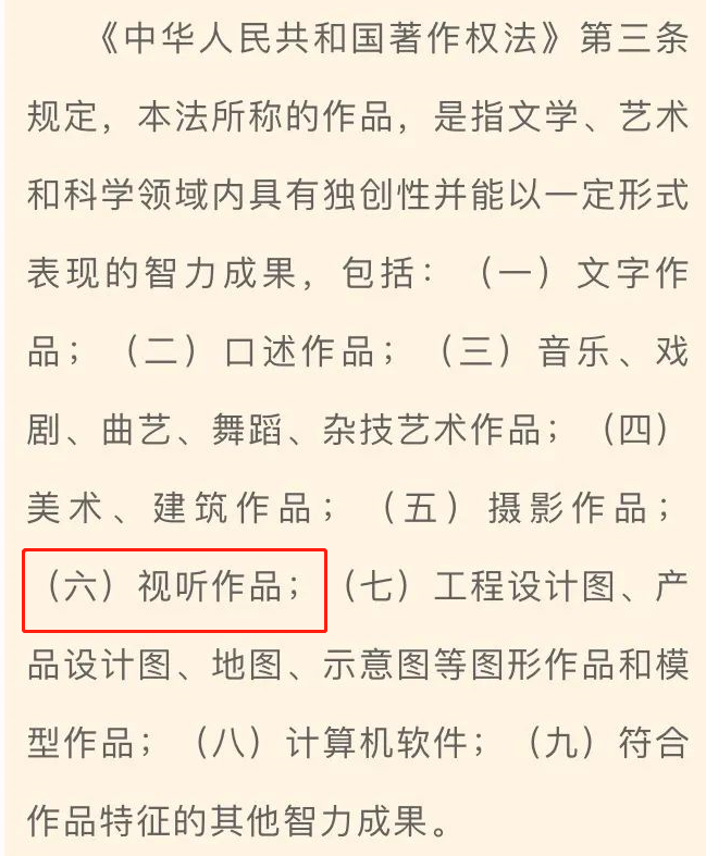 此外,此前法律中概括视频类内容的表述“电影作品和以类似摄制电影的方法创作的作品”被修改为“视听作品”,将短视频、直播等新形式的内容概括其中。