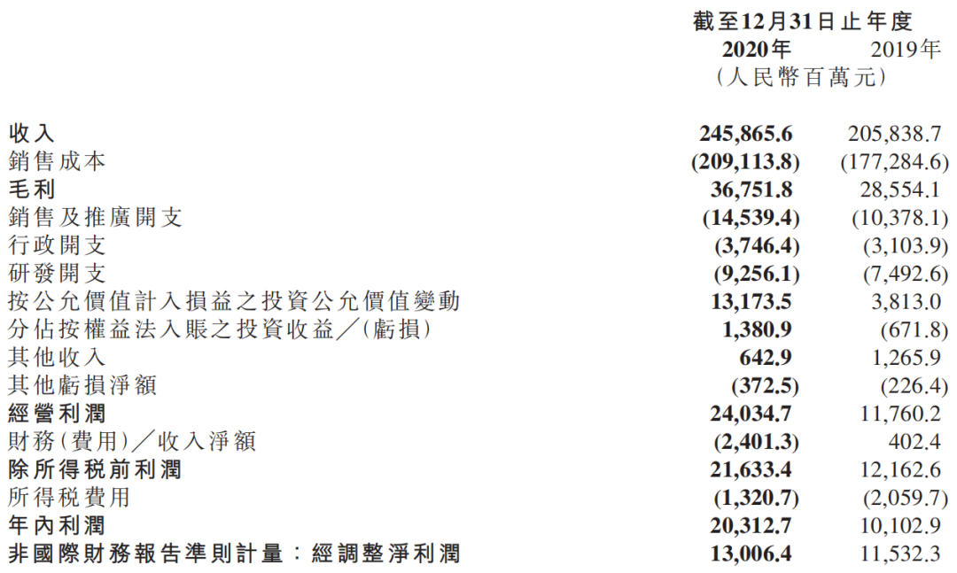 小米的毛利还在持续上升,从2019年的285.54亿元,增长28.7%至367.52亿元。不过,小米的销售及推广费用也大幅上涨,从2019年的103.78亿元,增长40.1%至145.39亿元,其中最主要的增长是宣传广告费用和交通运输费用。