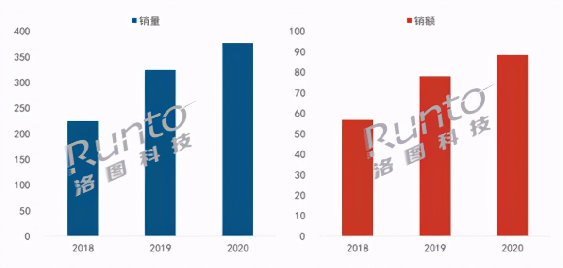 从2018年开始,我国彩电市场已出现连续三年量额齐跌。奥维云网最新发布数据显示,2020年中国彩电市场零售量规模达4450万台,同比下降9.1%,零售额规模1209亿元,同比下降11.7%。但另一边,根据洛图科技《中国智能投影零售市场月度追踪》报告,2020年中国智能投影市场销量为372万台,同比增长15%,销额为87.8亿元,同比增长12%,2018年至2020年,家用投影仪的年均复合增长率高达26.6%。