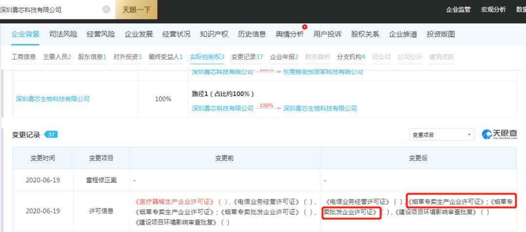 雾芯科技也并非没有为新规的到来做准备,据天眼查数据显示,雾芯科技在去年6月就已经拿到了《烟草专卖生产企业许可证》《烟草专卖批发企业许可证》。整个行业门槛提高后,率先拿到牌照的企业自然站在了行业前端。