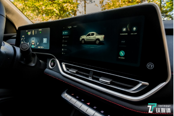 值得注意的是,“上汽牛”支持12模驾驶,用户通过按钮控制,可以切换2H、4H、AUTO、4L四种驱动形式,每一种驱动形式对应 ECO、POWER、NORMAL三种驾驶模式,共计12种驾驶模式供用户选择,让其有更多的选择来应对复杂的场景。