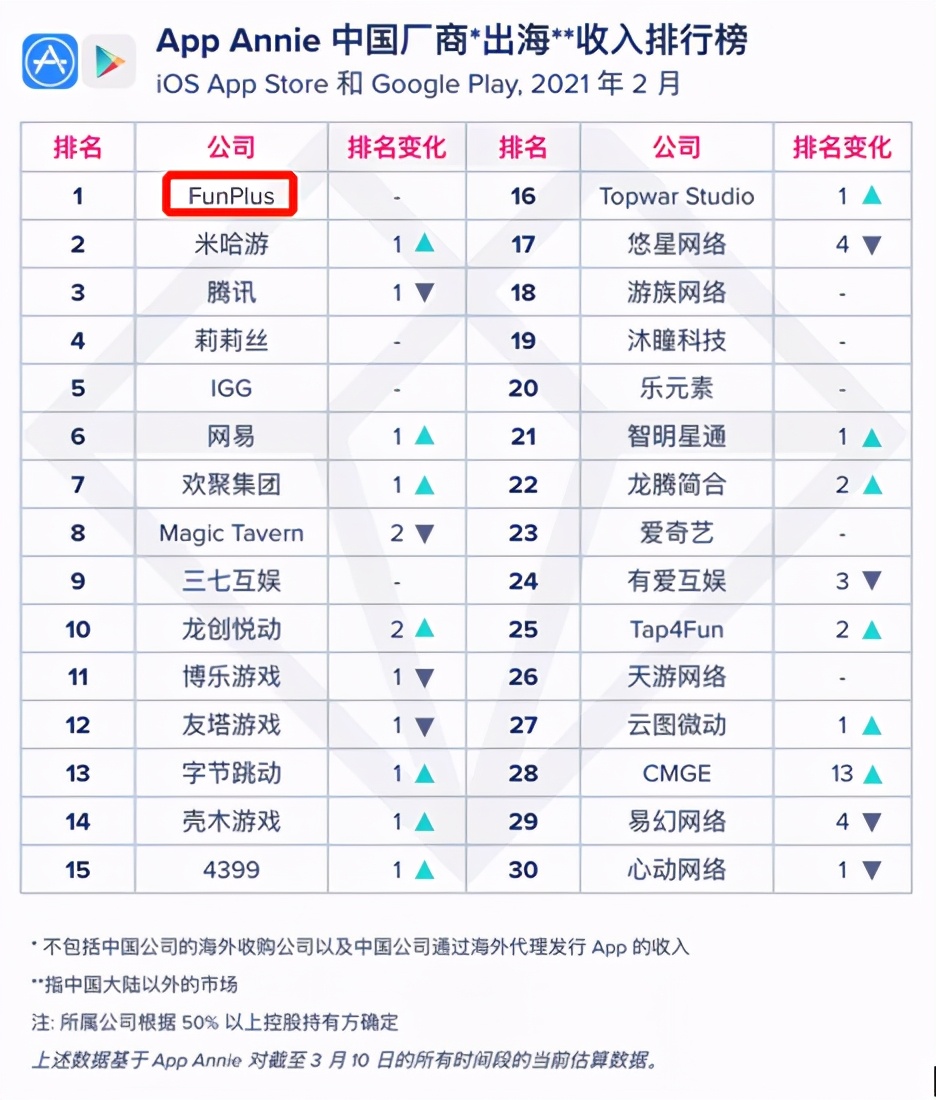 最后,在海外市场,腾讯面临的压力也不小。米哈游的压力之外,来自FunPlus等头部出海大厂的焦虑。根据App Annie发布的《2021年2月中国厂商及出海应用收入排行榜》显示,FunPlus趣加稳居海外收入排行榜首位。FunPlus趣加能持续霸榜海外市场,主要得益于旗下的优秀游戏产品支撑,《State of Survival》、《阿瓦隆之王》、《火枪纪元》均登入2月出海收入榜TOP30。